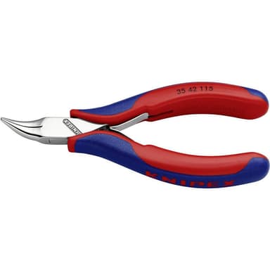 Elektronik och finmekanik Flat rundtång Böjda 45° 115 mm Knipex 35 42 115 SBSpegelpolerad · Tvåfärgade flerkomponentshandtag · Genomgående precisionsled · Slät slipade gripytor · Kanter gradades noggrant · Lågfriktions dubbelfjäder ·Läs mer om produkten