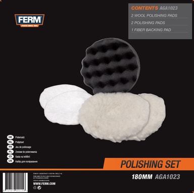 Använd denna uppsättning polerskivor 180 mm AGA1023 från FERM med din vinkelpolermaskin och få din bil att skina som aldrig förr! Denna uppsättning består av 2 poleringsskivor i ull, 2 poleringsskivor i skum och en fiberskiva. Dessa skivor med en diameter på 180 mm är en perfekt tillbehörssats som passar din FERM vinkelpolermaskin AGM1084P.