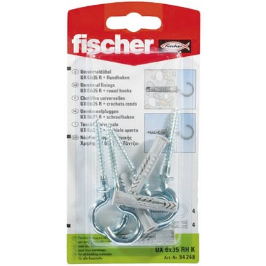 Fischer UX 6 x 35 RH K Universalplugg 35 mm 6 mm 94248 4 stFör fastsättning av: bilder, rörelsedetektorer, lampor, golvsocklar, elektrisk omkopplare, små vägghyllor, handdukshållare, lätta spegelskåp, postlådor, blomsterkorgar och gardinstänger.Läs mer om produkten