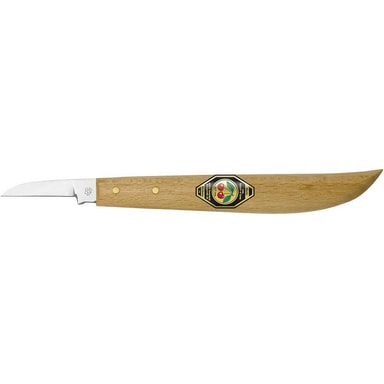 • Karvsnittkniv med rund rygg och rakt skär, med vitboksskaft, finskär-, balsa-, roskniv