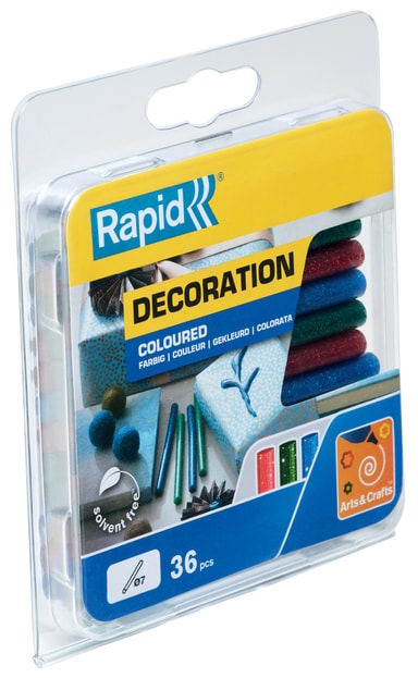 7 mm limstavar i grön, röd och blå glitterfärg. Förpackning med 36 korta limstavar.Läs mer om produkten