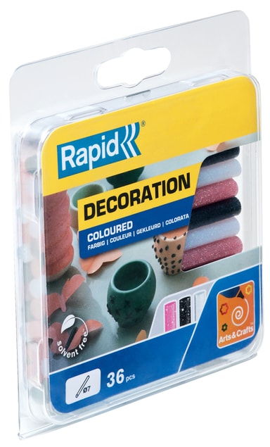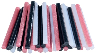 7 mm limstavar i vit, rosa och svart glitterfärg. Förpackning med 36 korta limstavar.Läs mer om produkten