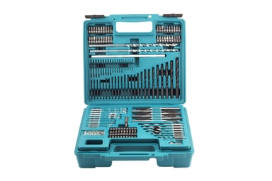 En omfattande uppsättning tillbehör med borrar för trä, metall och betong samt ett bänkblad. Skruvmejselbitar. Sex tunna, hylsiga sågblad, magnethållare, 3 m rullmått, vattenpass.Läs mer om produkten
