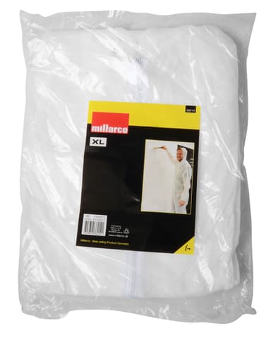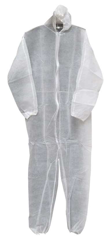 Onesize Färg: Vit Med huva, blixtlås och elasticitet i ärmar och benLäs mer om produkten