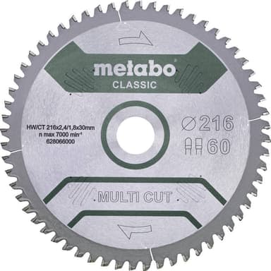 Metabo MULTI CUT CLASSIC 628286000 Cirkelsågblad 305 x 30 x 2.2 mm Antal tänder (per tum): 80 1 stUniversell användning för krävande material · vid höga krav på snittkvalitet, t.ex. laminat, tunn plast-, aluminium-, koppar-, mässingsprofiler · passarLäs mer om produkten