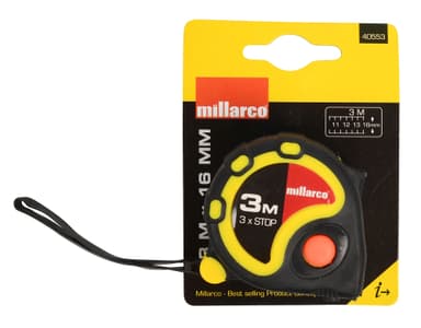 Millarco® måttband med stopp 16 mm x 3 meter