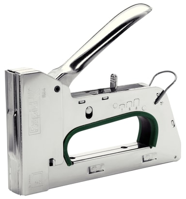 Häftklammertyp: 140 Benlängd: 6-14 mm Mått: 39 x 132 x 285 mm Material: stål Rekylfri, låsfunktion, stötdämpare. 3-stegs tryckjustering. Lämpad att säkra tak, dukar etc.Läs mer om produkten