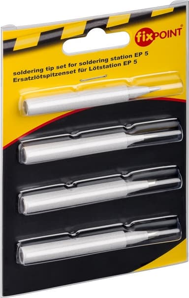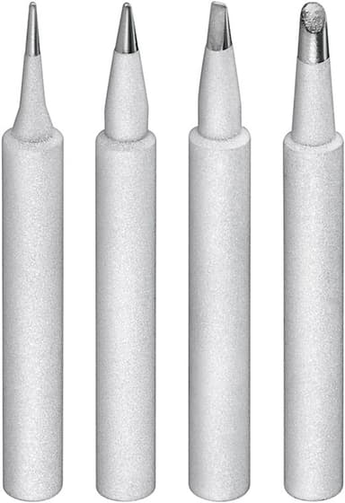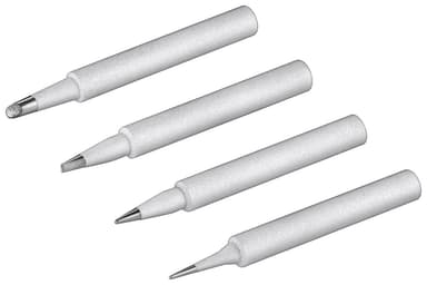 Sortiment med två blyertsformade lödspetsar, en mejselspets och en vinklad spets