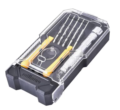 Ideelt sett til reparasjon av f.eks. mobiltelefoner. Levert i praktisk oppbevaringsboksLäs mer om produkten