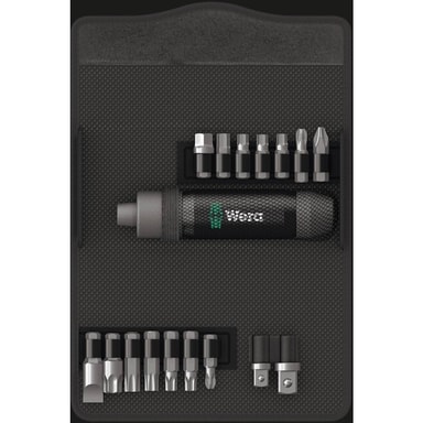 Slagskruvmejselsats 17-delars. Wera 2090/17 1 set2090 Impact driver 90 Nm with extensive accessories · Loosens seized fasteners without the use of power tools · Impact forces are converted into rotary motion · The double-curved design makes the WeraLäs mer om produkten