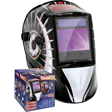 Svettskyddshjälm Svart Toolit 5-9/9-13 G INDIAN 038332 EN 175 , EN 379XL-synfält · Ökad känslighet tack vare 4 sensorer · Wig svetsning 2 A. · Kan ställas in på hjälmen: Svetsning eller slipning · Kan ställas in i hjälmen: Känslighet, tid ·Läs mer om produkten