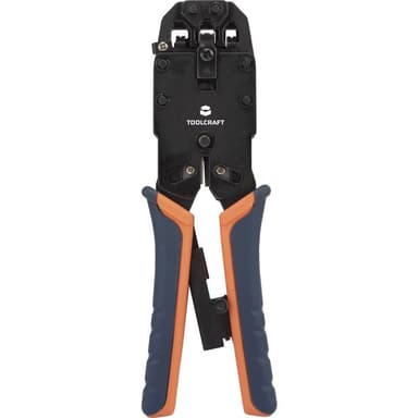 TOOLCRAFT TO-4988586 Crimptång Modularkontakt (västerländsk) Inkl. kabelavbitare, inkl. avisoleringsverktyg RJ10, RJ11,Pressning av 4-, 6- och 8-poliga RJ-kontakter av typen RJ10, RJ 11, RJ 12 och RJ 45 Kapning och avskalning av platta, oskärmadeLäs mer om produkten