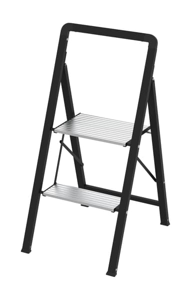 Trappstege i aluminium med stålram och två steg. Med låsanordning, så att trappstegen är säkrad vid uppställning. Endast 4,8 cm i tjocklek i ihopfällt tillstånd. Mått: H 89 × 41 cm Belastning: max. 150 kgLäs mer om produkten