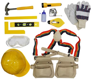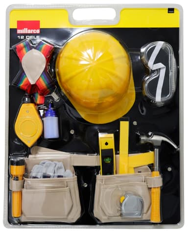 Verktygsset junior med följande 12 delar: 1 x vinkel 1 x kombinationsstång 1 x snickarblyerts 1 x tumstock 1 x måttband 3 m 1 x säkerhetshjälm 1 x bältesväska 1 x handskar 1 x hammare 2 x skruvmejslar 1 x handsågLäs mer om produkten