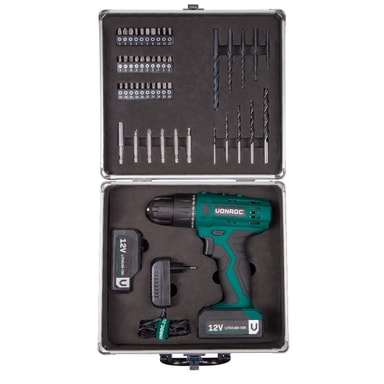 Behov av att installera köksinredning, sätta takplattor eller fixa golvet? Med en kraftfull och hållbar VONROC 12V sladdlös borr och skruvdragare blir det enkelt. Maskinen har 2 hastigheter för att säkerställa att maskinen levererar tillräcklig kraft upp till 20 Nm. Som tillägg så har maskinen 17 olika inställningar av vridmomenten, har både höger och vänstergång och en kraftig borrfunktion. Snabbchuck för bits, bitshållare samt borr upp till 10 mm. Detta gör denna batteridrivna skruvdragare/borrmaskin till ett praktiskt all-round maskin, passande för alla "gör-det- självare" till ett mycket fördelaktigt pris.