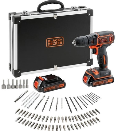 Black & Decker BDCDC18BAFC-QW är en riktigt bra batteridriven borrskruvdragare med både styrka och hastighet för att borra i trä och metall samt all typ av skruvdragning för alla dina hemmaprojekt. Hela 80 tillbehör ingår, däribland dubbla batterier, laddare, förvaringsväska och en stor sats med bits och borr så du är redo att sätta igång med dina projekt direkt.