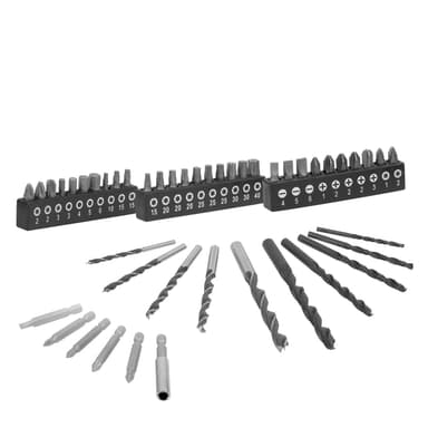 Denna borrskruvdragare levereras som ett komplett set, inklusive ett 36-delars bitsset, ett 5-delars träborrset och ett 5-delars metallborrset. Alla delar är prydligt förpackade i en premium aluminiumväska med högkvalitativt skum för utmärkt skydd.