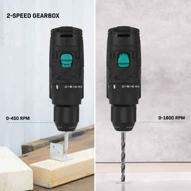 CD511DC drivs av en 20V motor med upp till 40Nm vridmoment. Välj mellan 17 vridmomentinställningar plus ett separat borrläge, så är du alltid redo med rätt inställning för varje material och situation. Den tvåväxlade växellådan (I: 0–450 / II: 0–1600 varv/min) ger dig full kontroll och flexibilitet. Den metalliska snabbchucken passar bits och borr med diametrar från 0,8 till 10 mm, vilket gör verktygsbyten enkla och snabba. Från känslig montering till mer krävande borrjobb – denna borr anpassar sig utan problem. Maximal kontroll med minimal ansträngning!