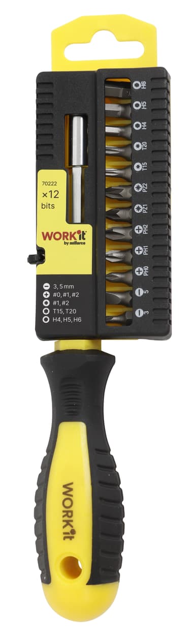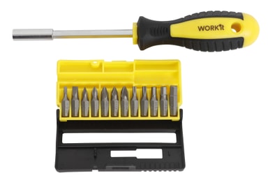 WORK It® bitsskruvmejselsats med 12 bits i praktisk låda.Läs mer om produkten