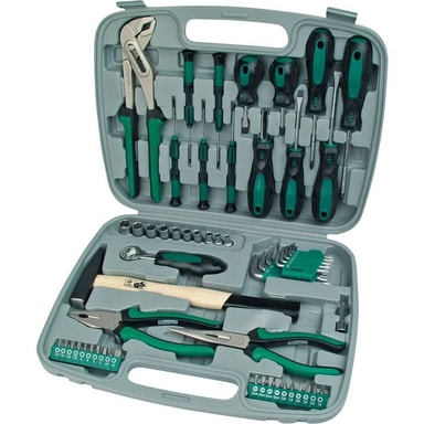 Brüder Mannesmann Mannesmann M29057 Verktygsväska med utrustning 57 delarTänger med 2-komponents grepphylsorMed glidskyddSkruvmejsel med halkfritt handtagKlingor i kromvanadinstålHylsor, vinkelskruvmejslar och bits av kromvanadinstål. OBS! ViLäs mer om produkten