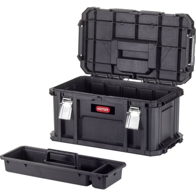 KETER 239995 Connect Verktygslåda (tom) SvartExtra bred verktygslåda med avtagbar insats · Stapellås med lång livslängd Tåliga metallkedjor · Kompatibel med alla element i KETER Connect-systemet. OBS! Vi beklagar att vi inte har hunnit översättaLäs mer om produkten