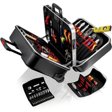 Knipex BigTwin 00 21 41 Elektriker Verktygsväska med utrustning 63 delar (B x H x D) 510 x 270 x 410 mmStabil ABS-plastkonstruktion · Aluminiumram och omslutande stötlist · I botten ingjutet ausziehgriff · Enkel- eller dubbelsidig öppning, ·Läs mer om produkten
