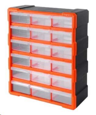 Sorteringslåda med 18 askar i klar plast Kan hängas upp på väggen eller staplas Ram och askar i PP Mått: 48,5 × 38,5 × 18 cm (h × b × d)Läs mer om produkten
