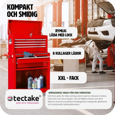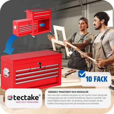 tectake Verktygsvagn med överskåp 10 lådor - röd