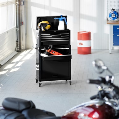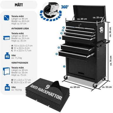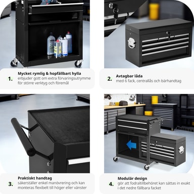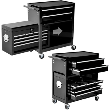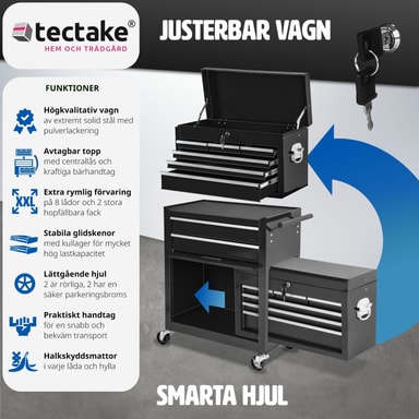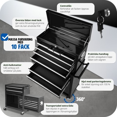 Denna verktygsvagn övertygar med det lilla extra - det löstagbara, fastsättningsbara och mobila överskåpet är raffinerat och praktiskt och fungerar bra som verktygslåda! Med denna verktygsvagn med överskåp har du allting nära till hands när du behöveLäs mer om produkten