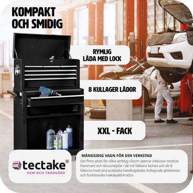 tectake Verktygsvagn med överskåp 10 lådor - svart