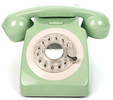 Cool telefon med retrolook.  Autentisk ringklocka ljud.  Ikonisk brittisk 70-tals stil.  Traditionell snurskiva för nummerslag.  RJ11 kabel / förbindelse. Läs mer om produkten