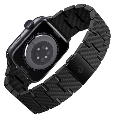 Den minimalistiska, men ändå enastående estetiken hos klockbandet i svart kolfiber är ett moderiktigt tillskott till alla Apple Watch.
