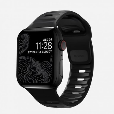 Nomad Sport Strap är gjutet helt av hållbart FKM gummi för att skapa ett mjukt och bekvämt armband som är vattentåligt.