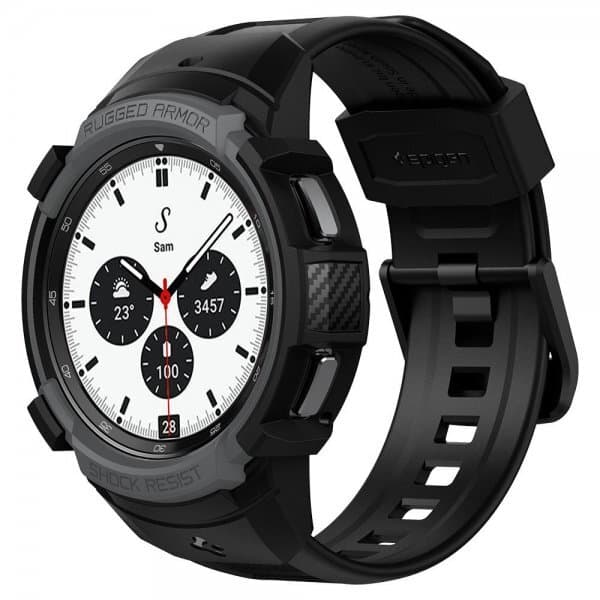 Rugged Armor Pro är den idealistiska kombinationen av stil och försvar. Det flexibla lagret skyddar mot dagligt slitage så att du inte behöver oroa dig för repor. Skalet har en matt yta och accenter med kolfibertextur som ger en modern look. Kombinerat med detta är ett justerbart armband som är inbyggt i skalet.