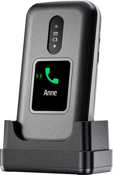 Doro 2881 mobiltelefon har en ljusstark 2,4-tums inre skärm, vilket gör det enkelt att läsa texter eller visa bilder på skärmen. Den yttre displayen ger uppringningsaviseringar och tid, och du fångar dina favoritögonblick med den bakre 0,3Mpx-kameran. Dessutom har telefonen en ficklampa och en nödknapp.