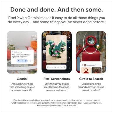 Google Pixel 9 5G smartphone med Gemini är en kraftfull enhet som har en vacker 6,3-tumsskärm, en imponerande kamera förbättrad med AI-funktioner och kraftfull prestanda tack vare Google Tensor G4-chipet och 4700mAh-batteriet.Läs mer om produkten