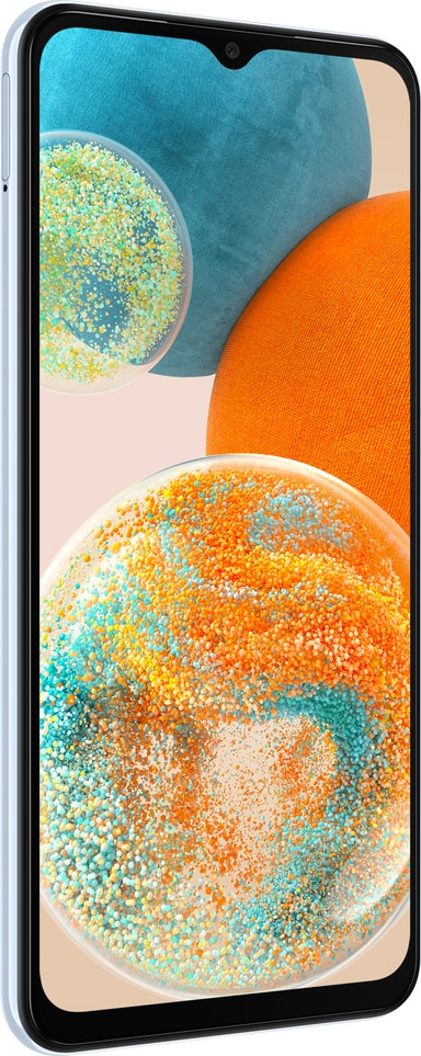 Samsung Galaxy A23 5G smartphone kommer med en stor 6.6" FHD+-skärm med en snabb 120Hz-uppdateringsfrekvens och vackra färger, ett 50+5+2+2Mpx-fyrkamerasystem, starkt 5000 mAh-heldagsbatteri och supersnabb 5G-dataanslutning.Läs mer om produkten