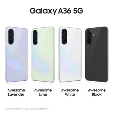 Samsung Galaxy A36 5G smartphone med långvarig prestanda har en levande 6,7” FHD+ Super AMOLED-skärm, en 50Mpx huvudkamera och drivs av en Snapdragon åttakärnig processor och ett 5000mAh batteri, allt insvept i en elegant design.Läs mer om produkten