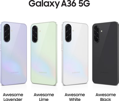 Samsung Galaxy A36 5G smartphone med långvarig prestanda har en levande 6,7” FHD+ Super AMOLED-skärm, en 50Mpx huvudkamera och drivs av en Snapdragon åttakärnig processor och ett 5000mAh batteri, allt insvept i en elegant design.Läs mer om produkten