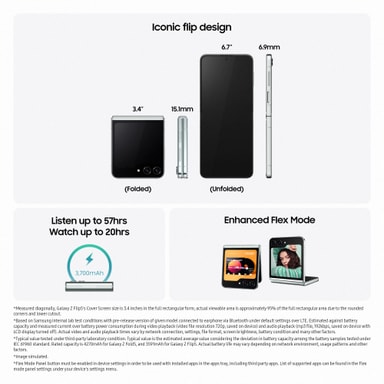 Med Samsung Galaxy Z Flip5 5G smartphone får du en stor 6,7” dynamisk AMOLED-skärm i en extremt kompakt form, en kraftfull Snapdragon-processor, dubbla 12Mpx bakre kamerauppsättningar och ett stort batteri med stöd för snabbladdning.Läs mer om produkten