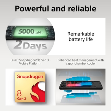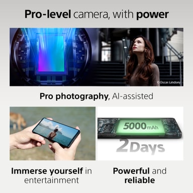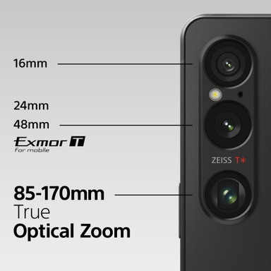 Som om det inte räcker med kompromisslös bildkvalitet från Sonys Exmor T för mobilsensor kan du nu komma ännu närmare motivet med det nya utökade optiska teleobjektivet (3,5x till 7,1x) på 85–170 mm (3,5x till 7,1x). Den här kraftfulla kameran är bara början; med Sonys expertis inom skärm-, ljud- och mobilspel syftar den till att överträffa dina underhållningsförväntningar samt att erbjuda två dagars batteritid. Xperia 1 VI ger en komplett smartphone-upplevelse.
