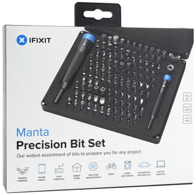 iFixit Manta 112-bit precision skruvbitskit innehåller 112 olika bits för alla dina reparationsprojekt. I satsen medföljer två handtag och flexförlängning som gör arbetet lättareLäs mer om produkten
