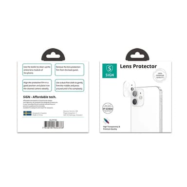 Praktiskt linsskydd för iPhone 12 Mini från SiGN. Skyddet av härdat glas är lätt att applicera och håller din lins skyddad från repor.