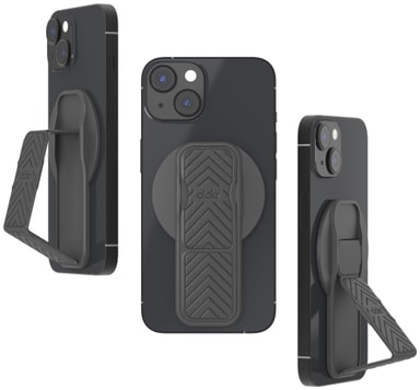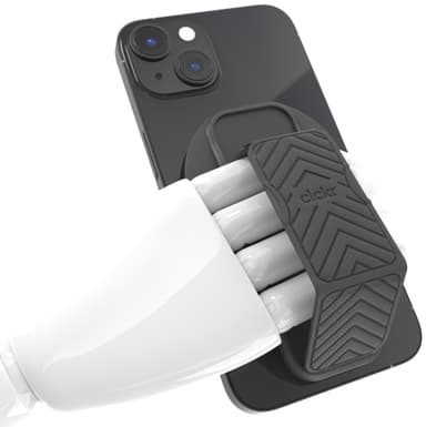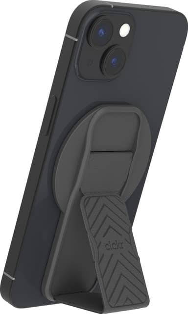 CLCKR MagSafe mobiltelefongrepp passar alla MagSafe-skal som är större än iPhone 12 Mini och liknande storlekar. Det fälls upp till ett grepp och både ett vertikalt och horisontellt ställ.Läs mer om produkten