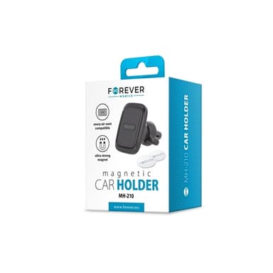 Forever MH-210 är en magnetisk bilhållare för telefoner och fungerar med alla smartphones. Hållbar, enkel att använda och utrustad med en stark magnet som håller telefonen säkert på plats. Ger telefonen stabilitet även på ojämna vägar och under bromsning. Med det magnetiska systemet kan du placera din mobila enhet i valfri vinkel. Smarttelefonen kan roteras 360 grader fritt. MH-210 magnethållare passar alla telefoner och smartphones.