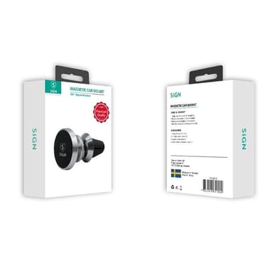 Den starka magneten håller din telefon i ett säkert grepp, oavsett modell. När bilturen är över och du tar loss din telefon så släpper bilhållare omedelbart. SiGN Magnetisk Bilhållare levereras med två tunna metallplattor med självhäftande tejp som kan placeras på mobilens baksida eller inne i skalet/fodralet. Har du redan ett magnetiskt skal så fäster det direkt på mobilhållaren.