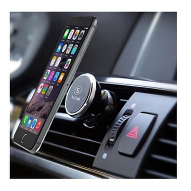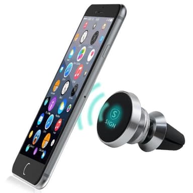 Stilren mobilhållare till bilen från SiGN. Bilhållaren har en elegant design med borstad finish och ett mjukt silikonöverdrag. Mobilhållaren passar till alla Smartphones och bilar, och fästs smidigt och enkelt i bilens fläktgaller.