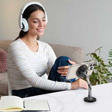 Tillverkad av högkvalitativ zinklegering och ABS-plast kännetecknas den av exceptionell hållbarhet och motståndskraft mot dagligt bruk. Justerbara arm- och kulleder gör att du kan justera vinkeln på telefonen, vilket säkerställer optimal synlighet och användarkomfort.