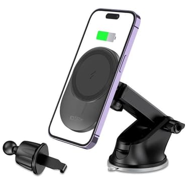 Tech-Protect MM15W-V1 är en kombination av ett bekvämt bilfäste och en supersnabb trådlös laddare som stöder MagSafe-teknik med en maximal effekt på 15W.