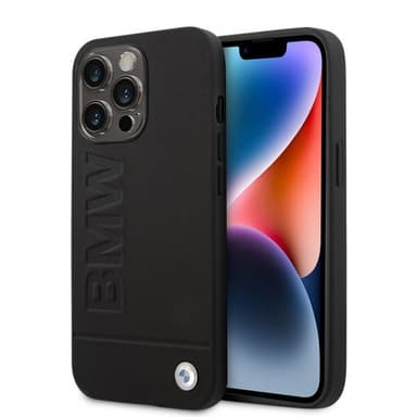 BMW iPhone 14 Pro Max Skal Hot Stamp Metal Logo Svart